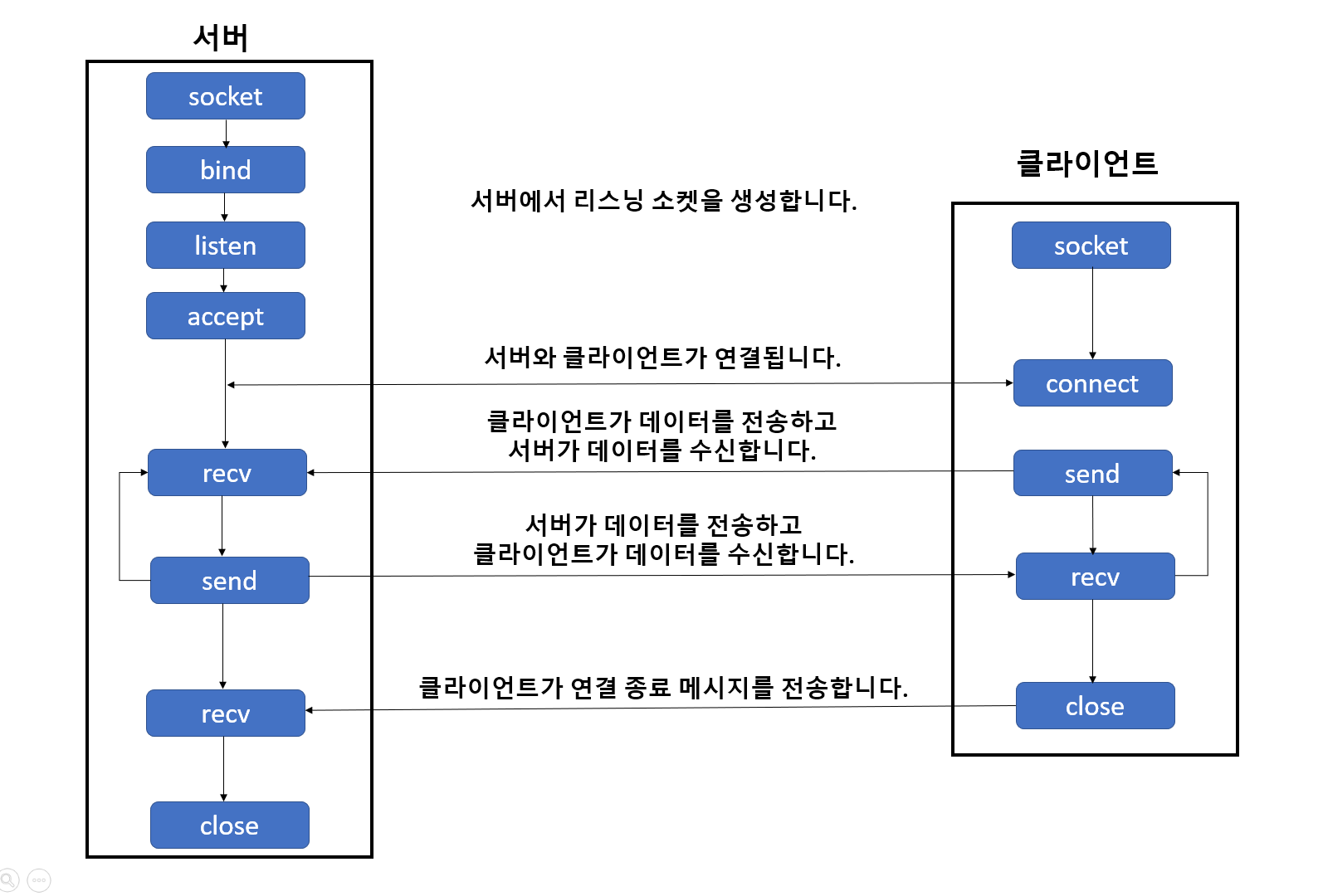 7. send와 recv 함수를 호출하여 data를 주고 받음