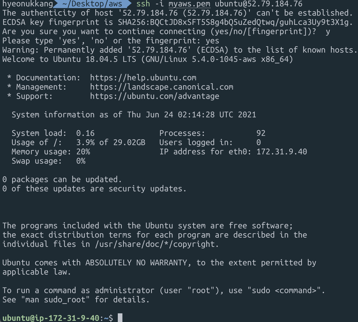 ssh -i myaws.pem ubuntu@52.79.184.76