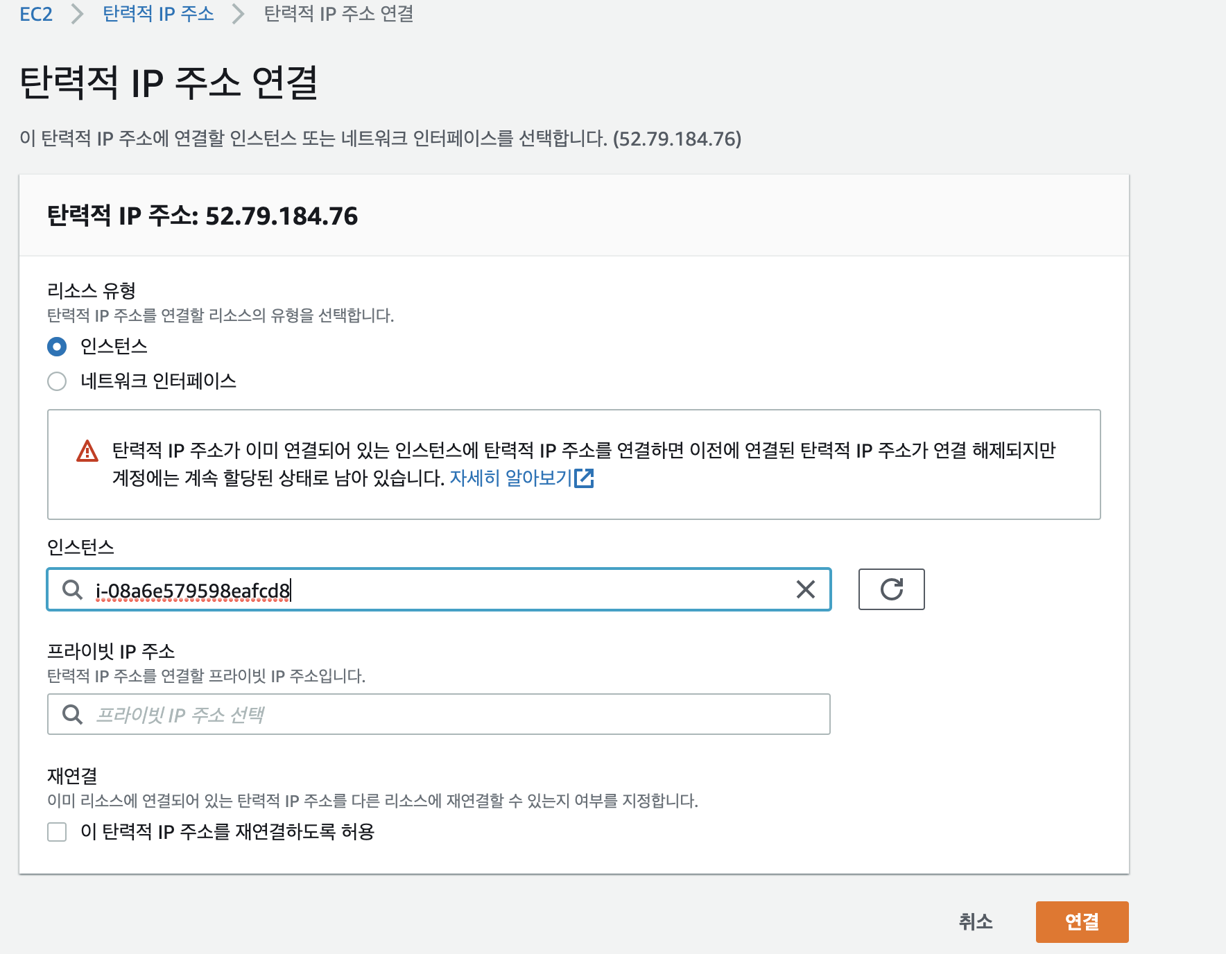 - ubuntu@ 뒤의 ip는 탄력적 ip에서 할당한 주소