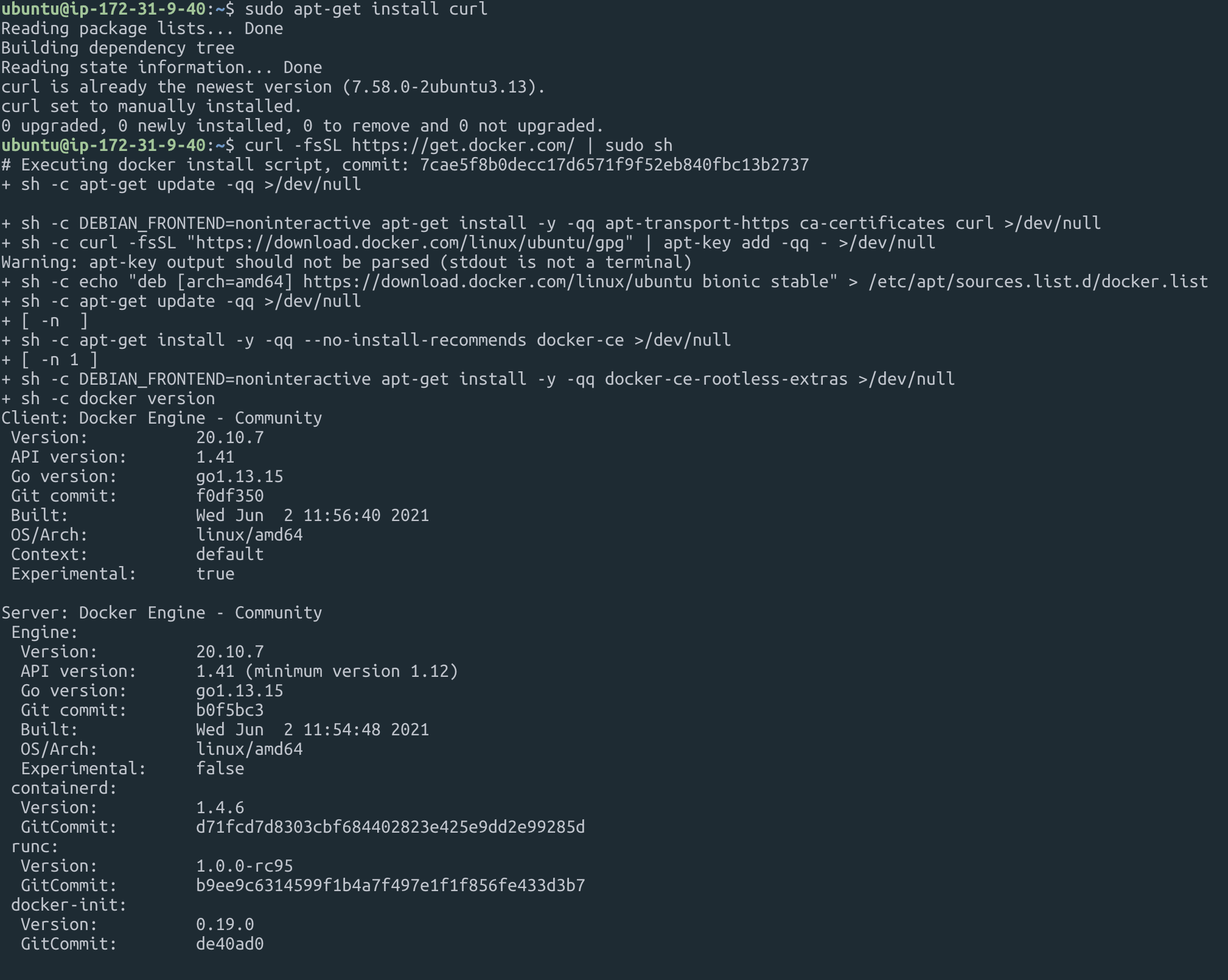 curl -fsSL https://get.docker.com/ | sudo sh