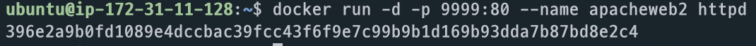 $ docker run -d -p 9999:80 --name apacheweb2 httpd