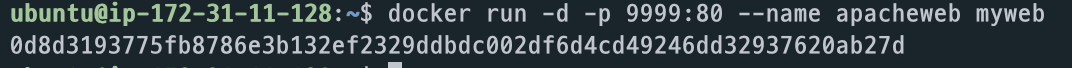 $ docker run -d -p 9999:80 --name apacheweb myweb