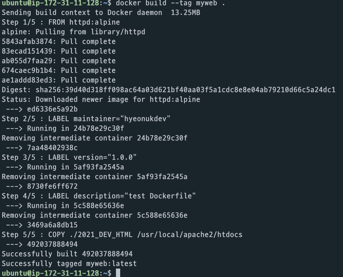 $ docker build --tag myweb .
