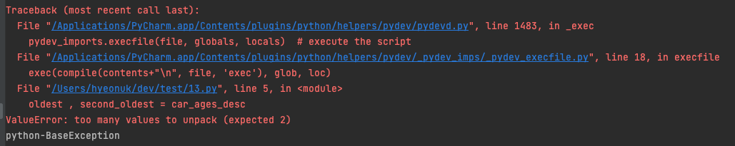 언패킹하 시퀀스의 길이를 미리 알고 있어야함