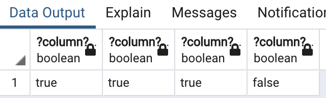 - 첫 번째 표현식, foo 패턴은 와일드카드 문자가 포함되어 있지 않아 LIKE 연산자가 등호 연산자 처럼 작동했습니다.