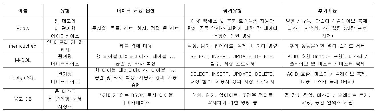 - 메모리 기반의 "키-값" 구조 데이터 관리 시스템