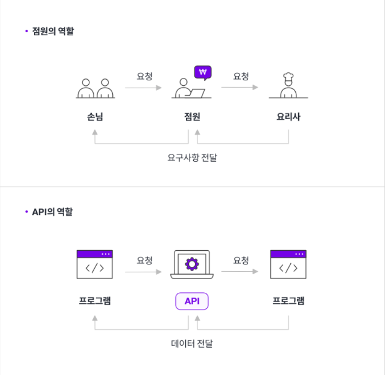 API는 서버와 데이터베이스에 대한 출입구 역할을 한다.